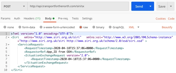 - Hostname (api.transportforthenorth.com/siri/sx)